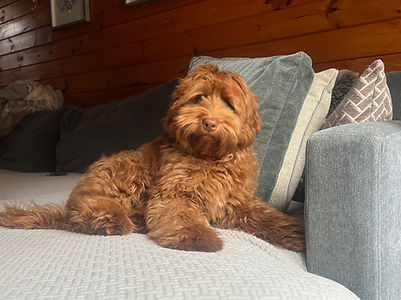 Willow whelped 7 beautiful puppies (4 boys 3 girls) on 9/19 in caramel parti, chocolate parti, caramel cream and black. Puppies will finish in the 18-25lb range and go home on 11/14/25. (All puppies are reserved.)