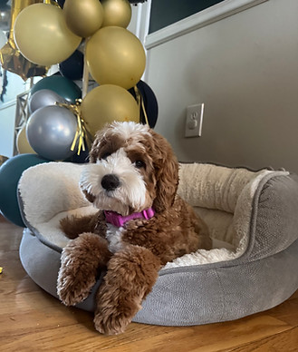 Petunia whelped 6 beautiful puppies (4 males, 2 females) on 8/19/25 in caramel and parti. All puppies are reserved at this time.